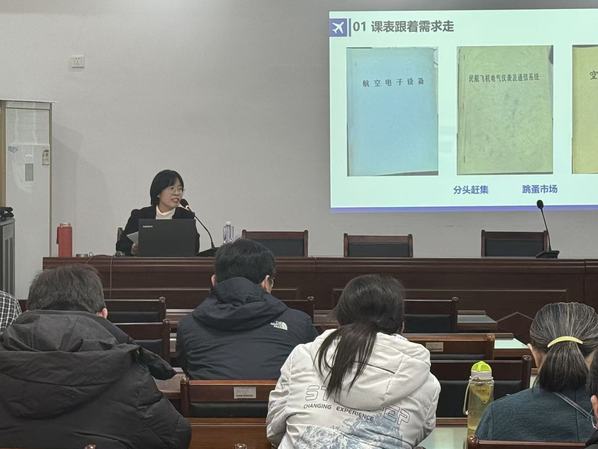 报告会上,郭庆叶老师紧紧围绕“课表跟着需求走,集体扛下跨学科教学的硬骨头;资质申请一起上,集体啃下专业建设的硬骨头;以赛促教共成长,集体打磨教学能力的突破路;经验传承不分家,集体守住教育初心的硬骨头”四个方面分享了学校飞行学院教师团队从建院之初到发展壮大的19年艰难奋斗历程。