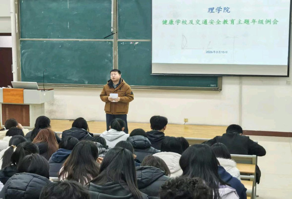 为扎实推进健康学校建设工作,切实强化学生交通安全意识与校园日常管理规范,2026年3月15日晚,理学院于8教305教室组织召开健康学校建设及交通安全教育主题年级例会。本次例会由学生科科长王贝贝、李国渊老师主持召开,22级、24级、25级学生参会。